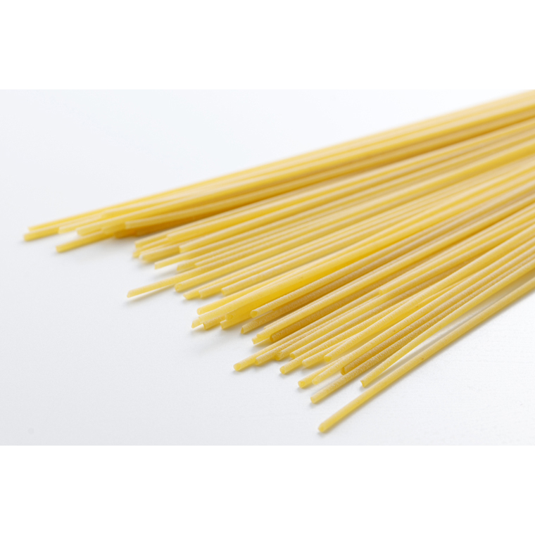 コメントブロンズのロングパスタ。直径は約1.93mm。食べ応えがあるため、濃厚なソースと相性が良い。