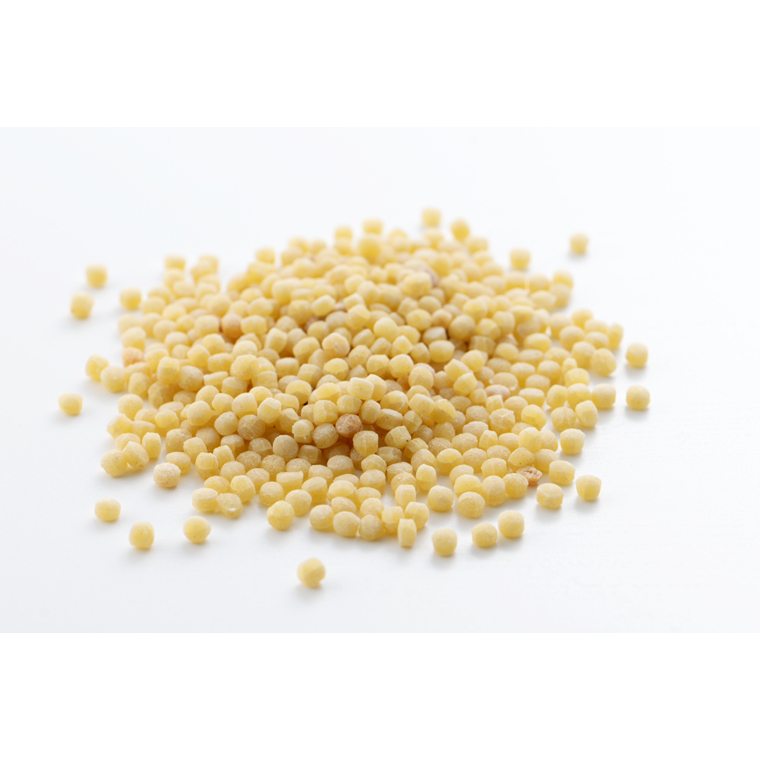 コメントサルデーニャの伝統的な粒状パスタ。生地を成形した後、専用の窯で香ばしくトーストすることで、ナッツのような風味(イタリア語で“nocciolato”と呼ばれる)と、しっかりとした噛みごたえが生まれる。このトースト工程は職人の経験と勘によって行われるため、温度や焼き時間が一定ではなく、ひと粒ひと粒に個性が生まれるのも魅力のひとつ。魚介のお出汁でリゾット風に、スープの具としても香ばしくて美味。